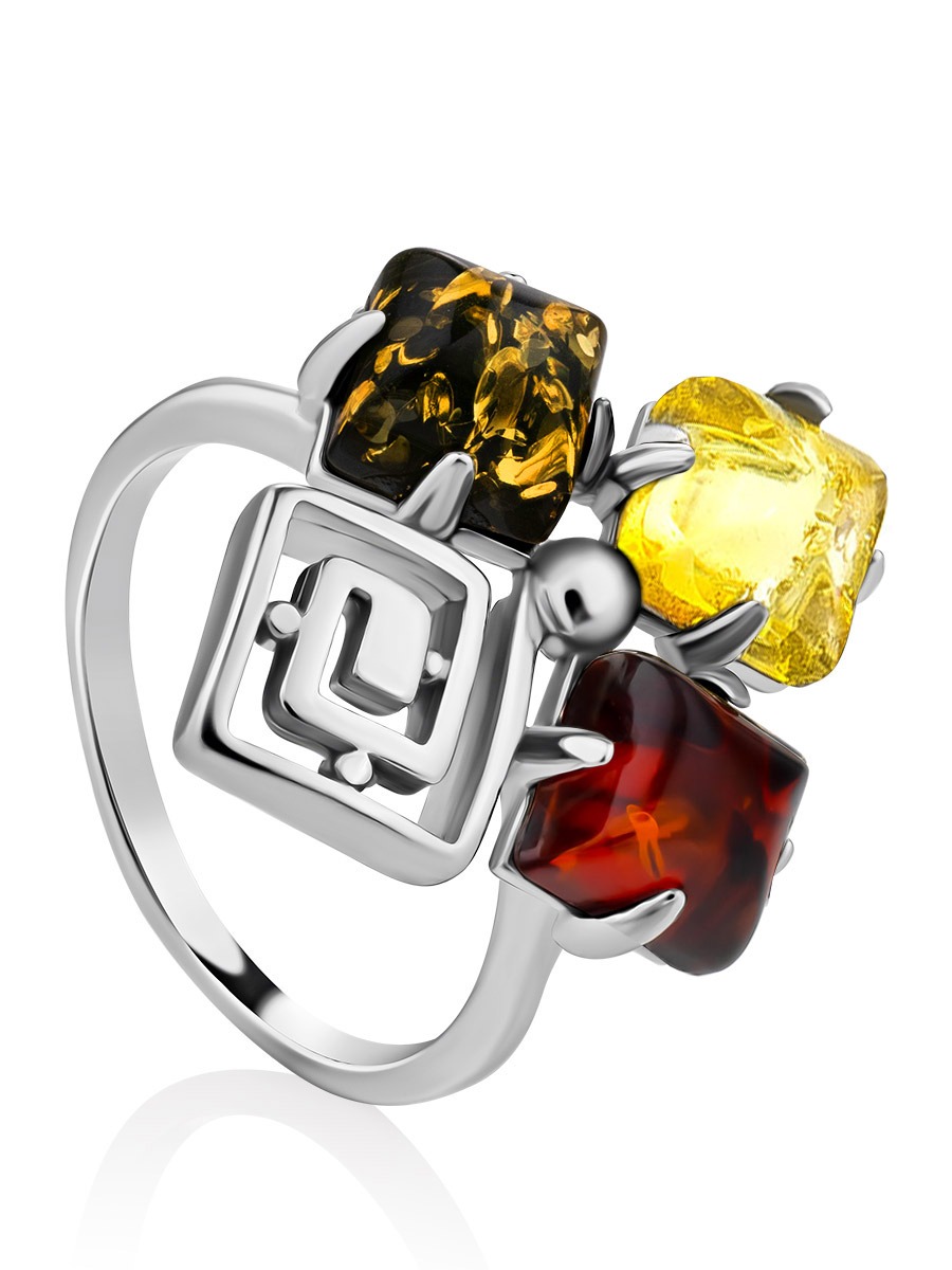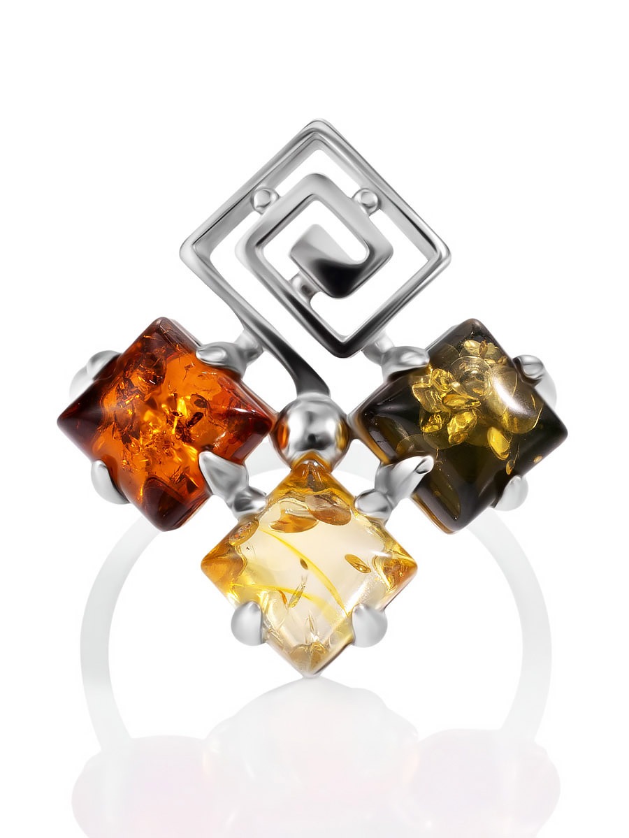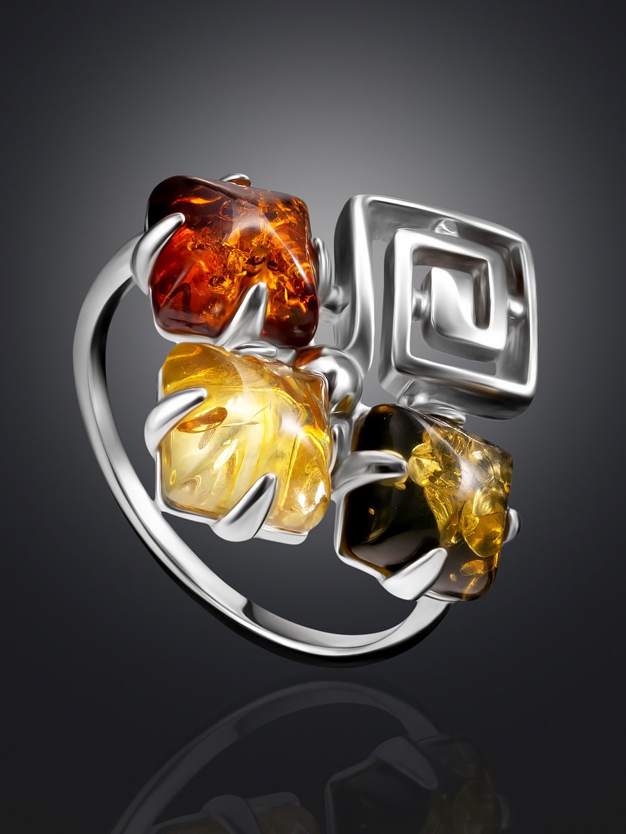 A bright and stylish ring called “Vernissage” with amber in three colors.