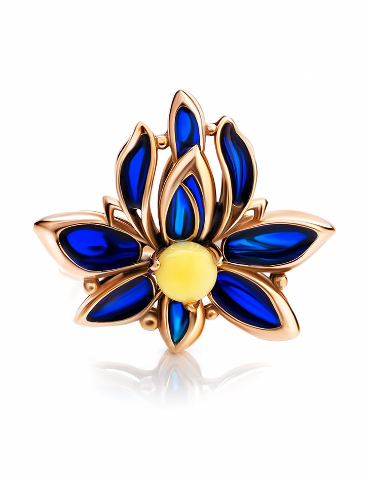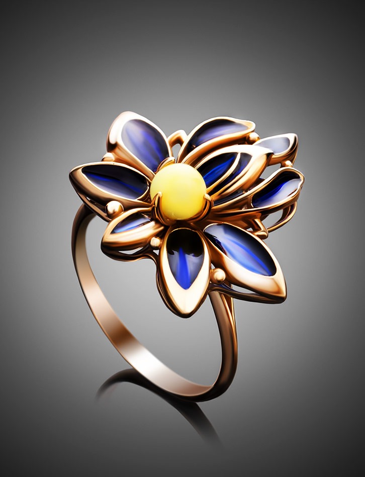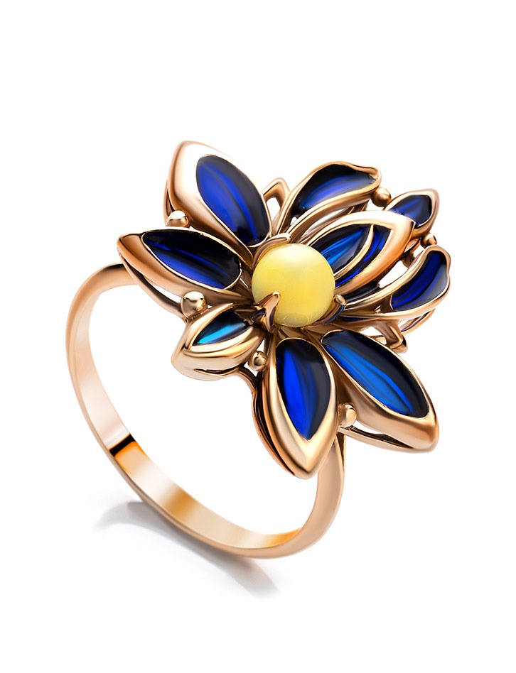 A magnificent gold-plated ring with natural amber and Verona enamel