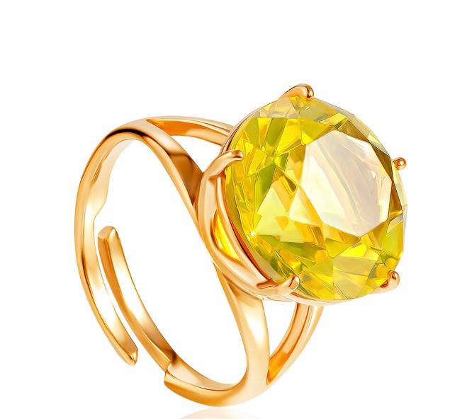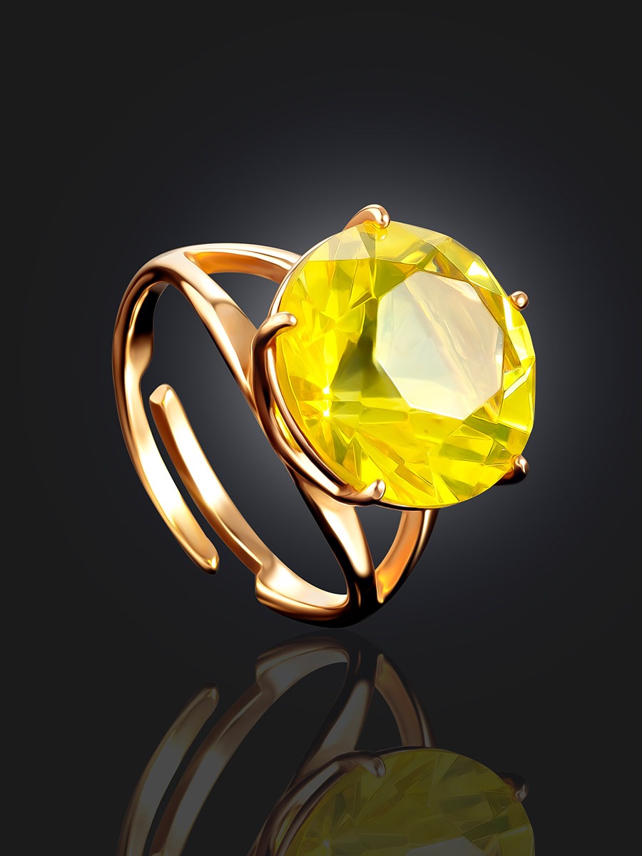 An elegant gold-plated ring with faceted lemon-colored amber “Baccarat