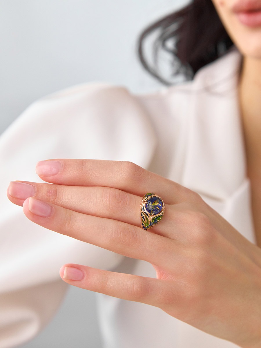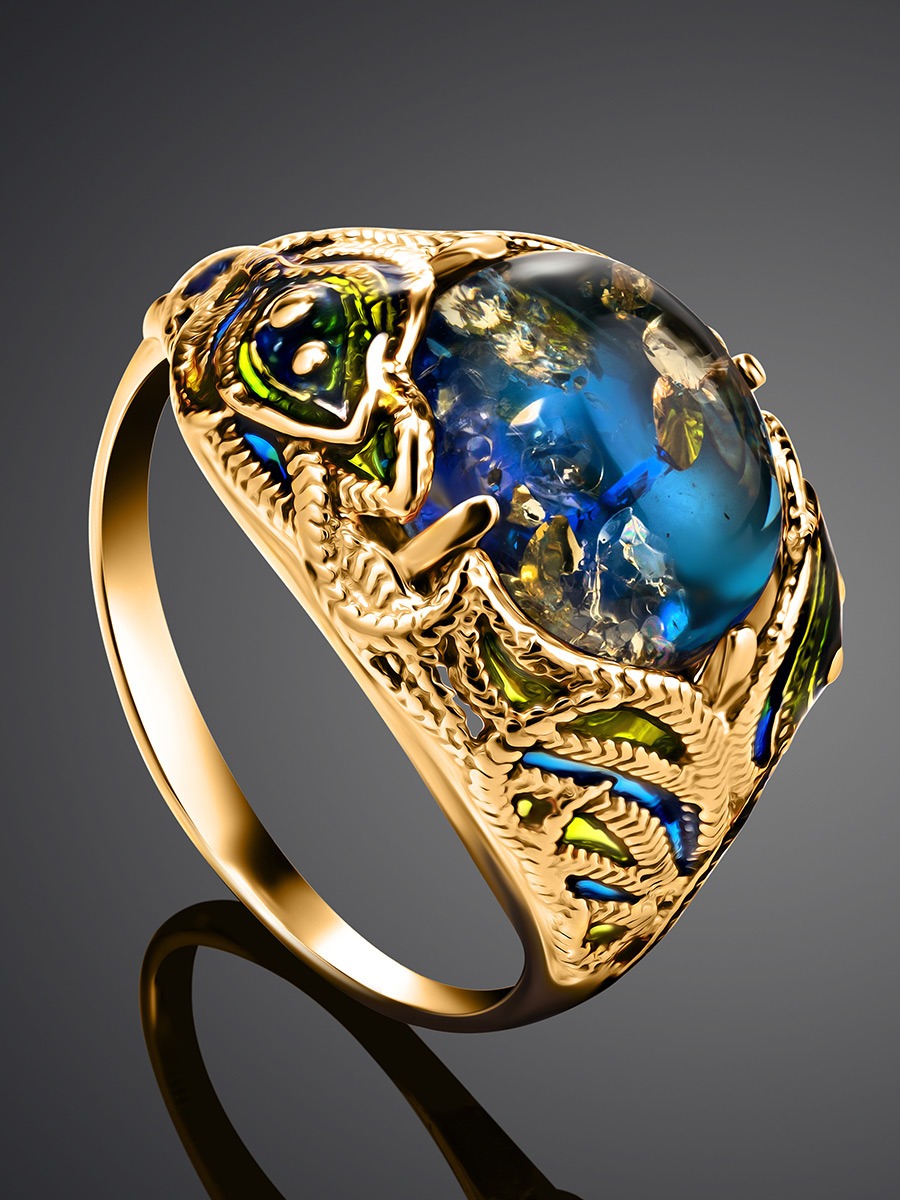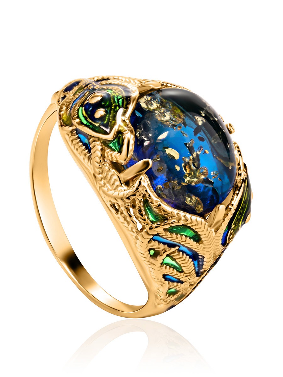 Embrace the exceptional beauty of the Natural Baltic Amber blue Stone Ring from Kaliningrad, and enjoy a piece that combines the rich heritage of Baltic amber with the vibrant allure of gold plated s925