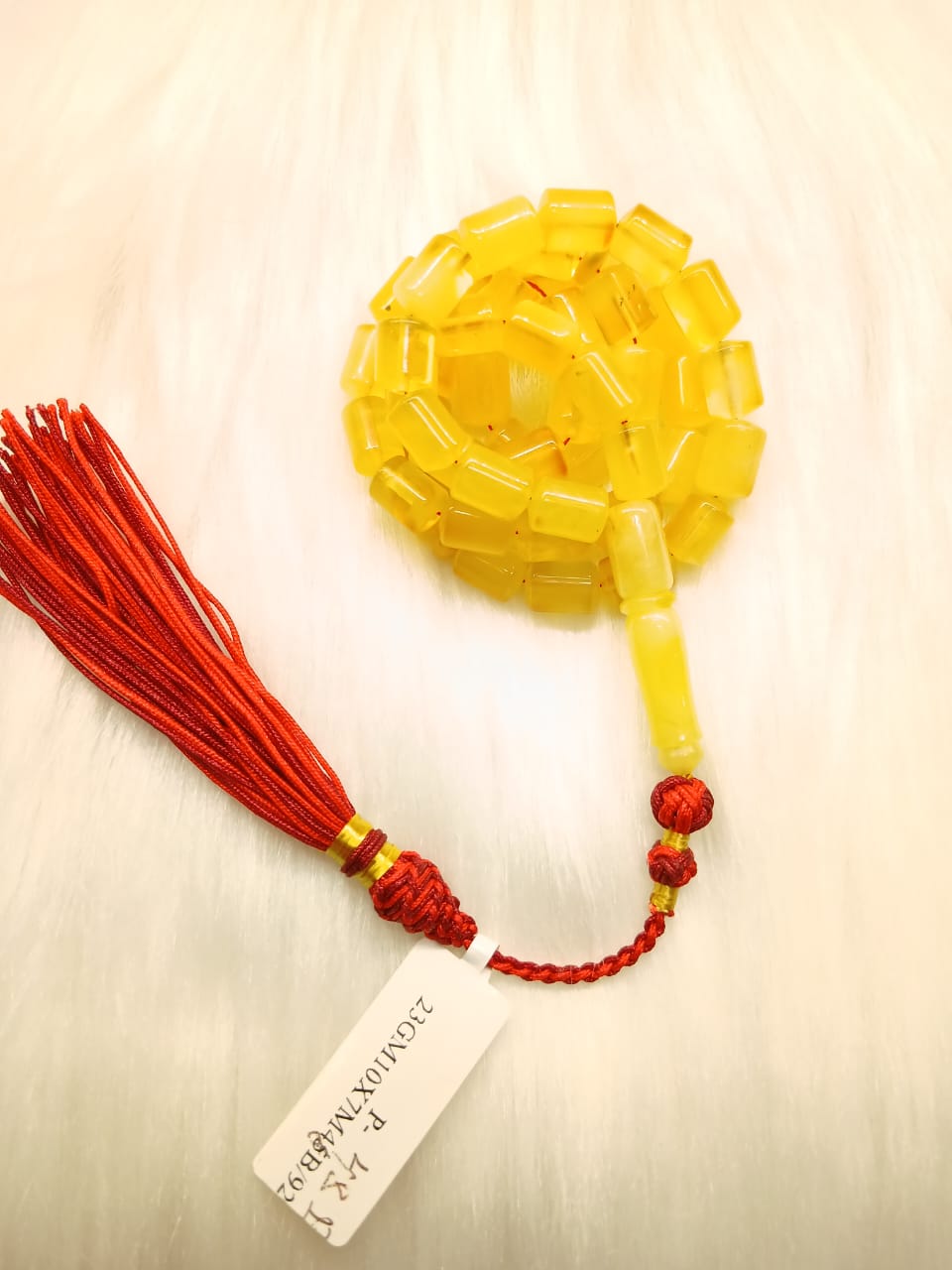 golden sunshine amber for golden hands for Tasbih easy to carry barrel shape with silk smoothy tassel available in 29gm 66 beads , 23gm 48 beads , 26gm 72 beads 9×7 or 10×7 mm size of amber bead