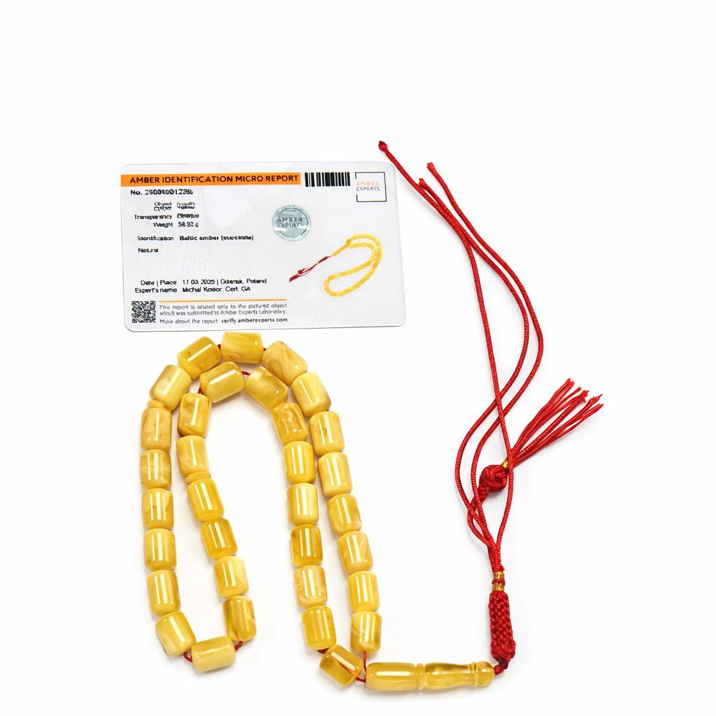 Natural Baltic amber Misbah from Poland 33gm 33 beads / 53gm 45 beads with certificate