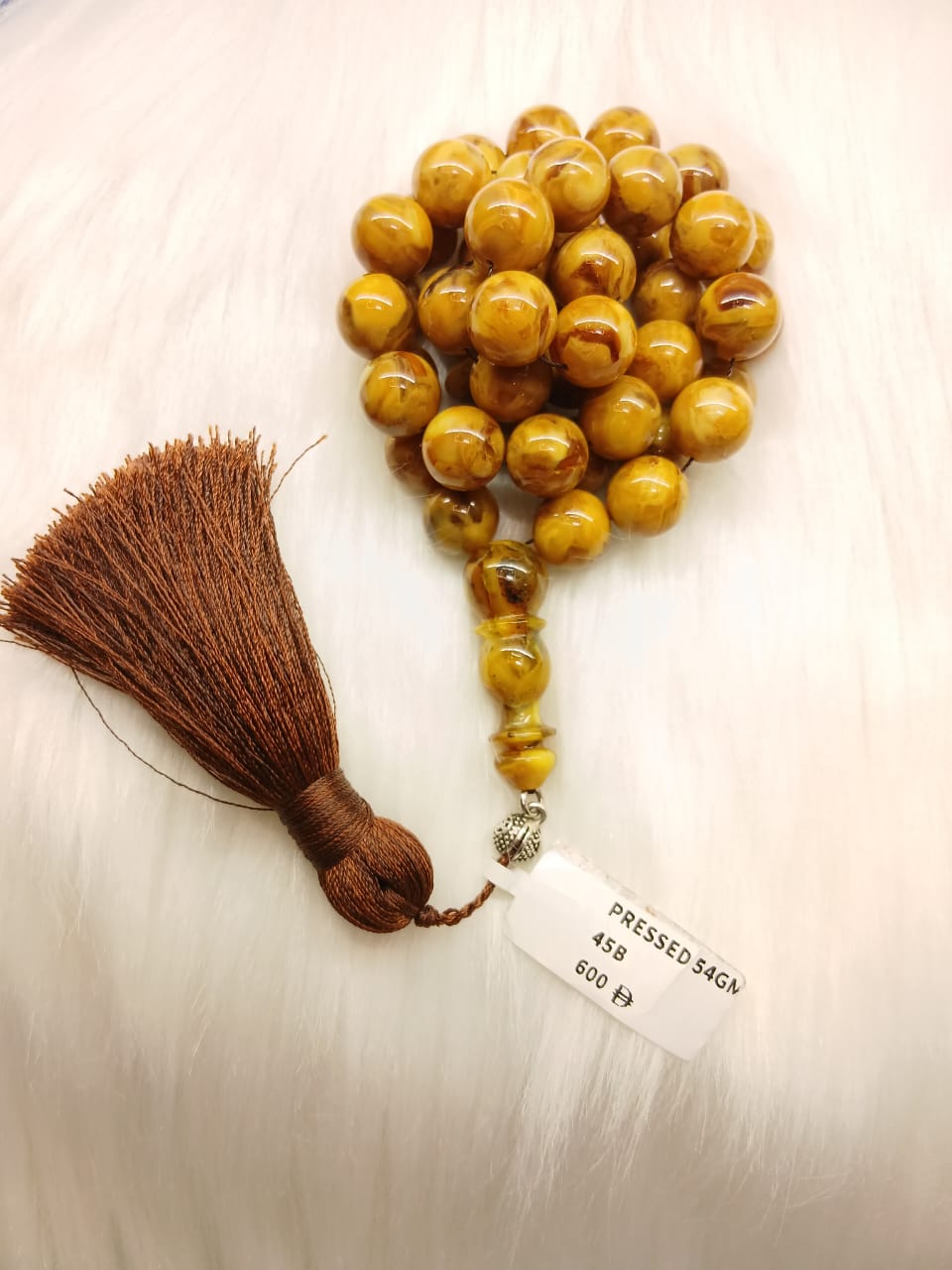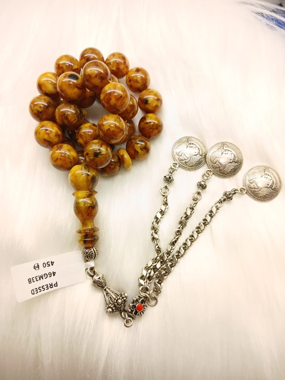 Natural Pressed Muslim rosary with 33 or 45 rounded -shaped beads made of natural molded amber can be a beautiful and spiritually significant piece of Islamic jewelry, often used for tasbih or dhikr (the practice of repetitive remembrance of Allah). Here’s how to create or select such a rosary: